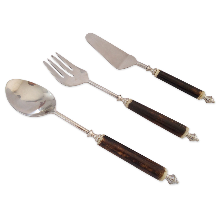 Description Salad Server Set of 3 w/bone Handle.